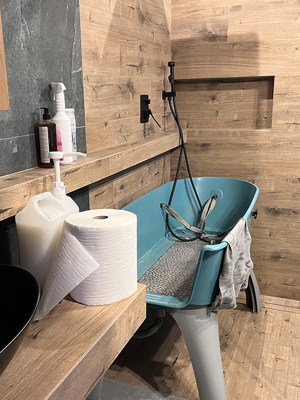 Kąpiel zwierząt realizowana jest z wykorzystaniem wysokiej jakości, profesjonalnych kosmetyków przeznaczonych do pielęgnacji zwierząt i posiadających wymagane atesty bezpieczeństwa. Stosowane preparaty dobierane są indywidualnie do każdego zwierzęcia, z uwzględnieniem rodzaju, kondycji oraz szczególnych potrzeb sierści. Zabieg wyczesywania wykonywany jest w celu usunięcia kołtunów oraz ograniczenia nadmiernego wypadania sierści, co wpływa na poprawę higieny oraz komfortu zwierzęcia, a także na utrzymanie czystości w jego otoczeniu.